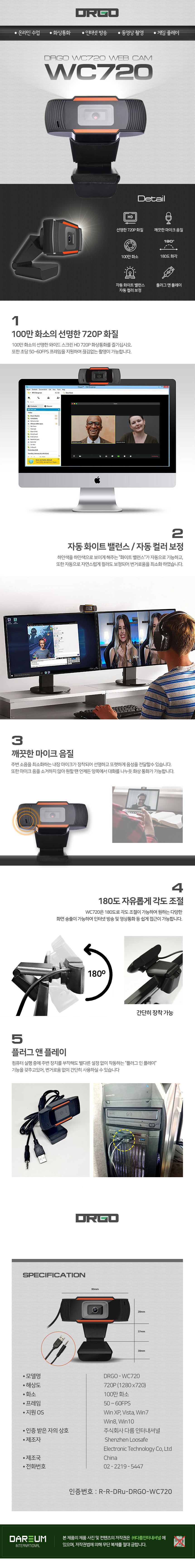| 품명 및 모델명 | DRGO WC720 HD 웹캠 |