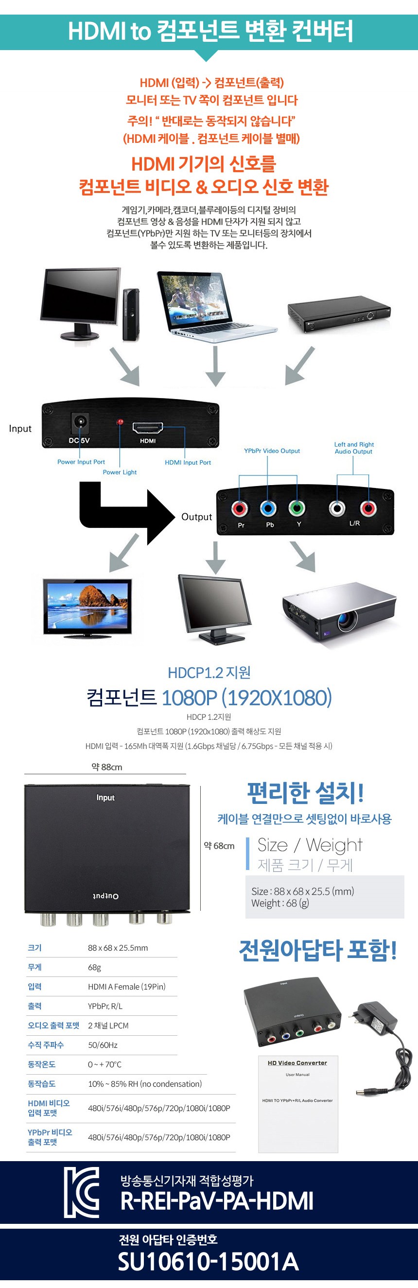 | KC 인증 필 유무 | 본품 : R-REI-PaV-PA-HDMI / 어댑터 : SU10610-15001A |