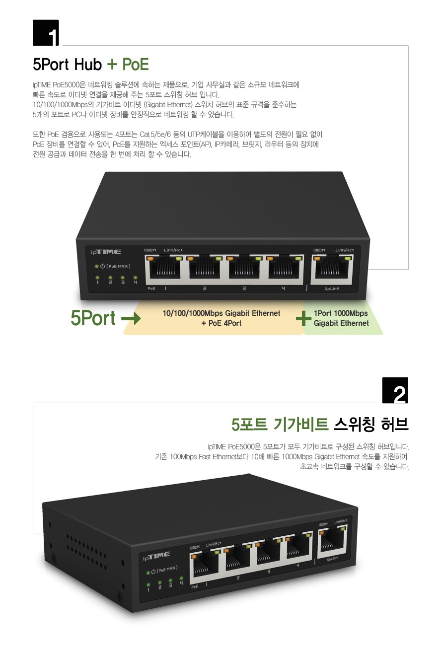 | 품명 및 모델명 | ipTIME PoE5000 스위치허브 |