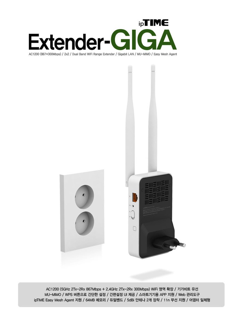 필수 표기정보 품명 및 모델명 ipTIME Extender-GIGA KC 인증 필 유무 MSIP-CRM-EFM-IPTIMEEXGIGA 정격전압, 소비전력 상품 상세페이지 참조 에너지소비효율등급 상품 상세페이지 참조 출시년월 2018-01 제조자(수입자) EFM…