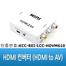 필수 표기정보 품명 및 모델명 HDMI 2 AV 컨버터 인증/허가 사항 상품 상세페이지 참조 제조국(원산지) 중국 제조자(수입자) 마노컴퍼니 소비자상담 관련 전화번호 해당제품은 A/S가 되지 않는…