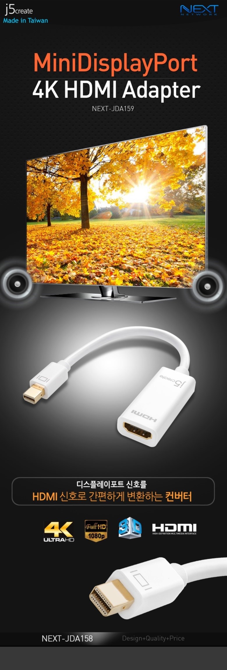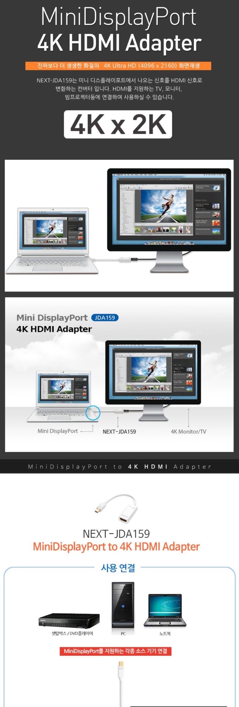 | 주요 사양 | Mini DisplayPort 4K HDMI Adapter |