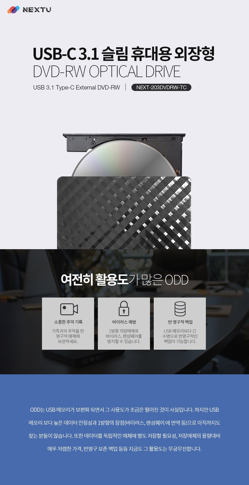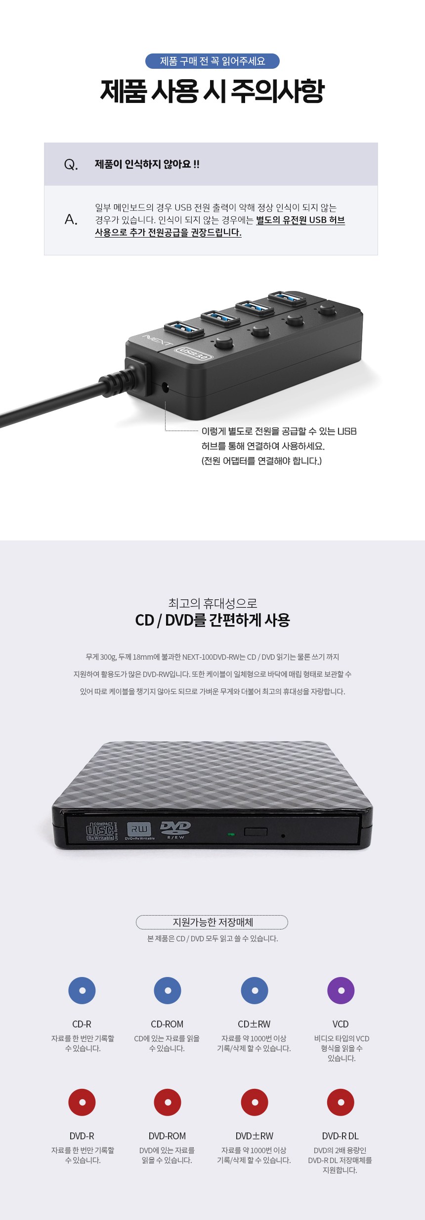 | 품명 및 모델명 | 슬림 휴대용 외장형 / NEXT-203DVDRWT |