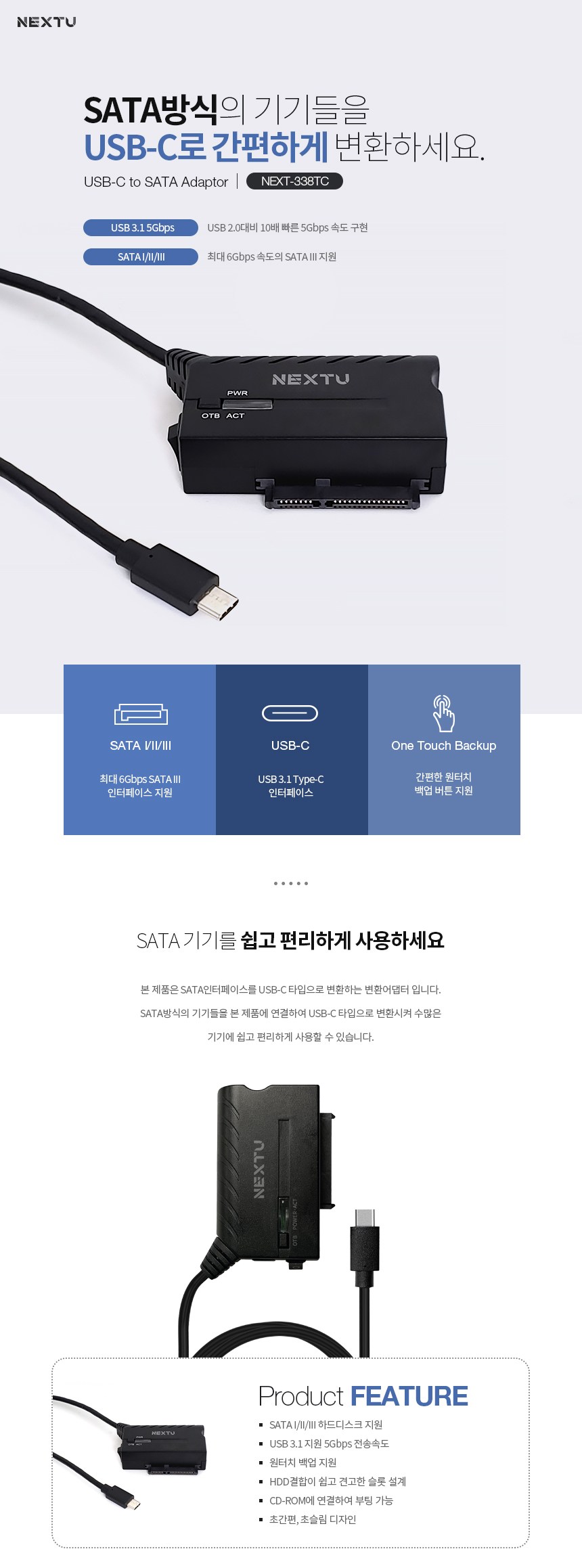 | 품명 및 모델명 | nextu USB C to SATA 컨버터 NEXT-338TC |