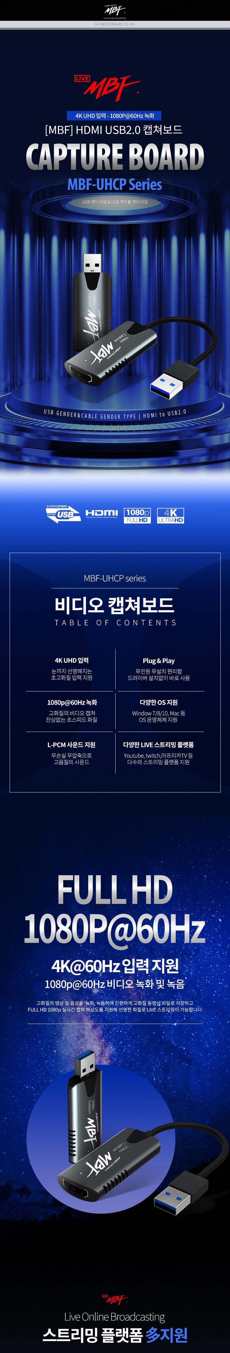 USB 2.0 외장형 캡쳐카드 4K HDMI 캡쳐보드 닌텐도 스위치 PS4 노트북 영상 녹화 60HZ 동영상 편집 라이브 방송 PC게임 녹화기 스크린 스캔, 케이블타입(UHCP-C)