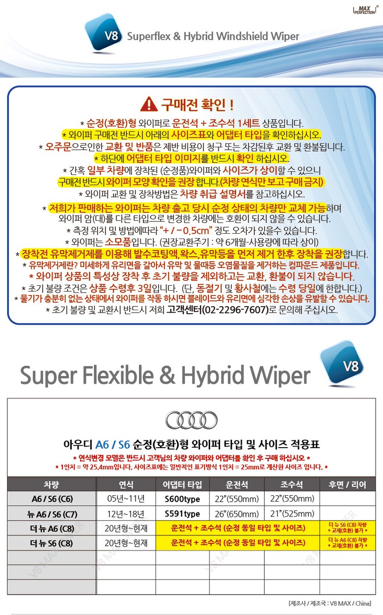 | 품명 및 모델명 | 아우디 A6 전용 순정형 와이퍼 A6 S6 AUDI C6 C7 C8 에이6 에스6 |