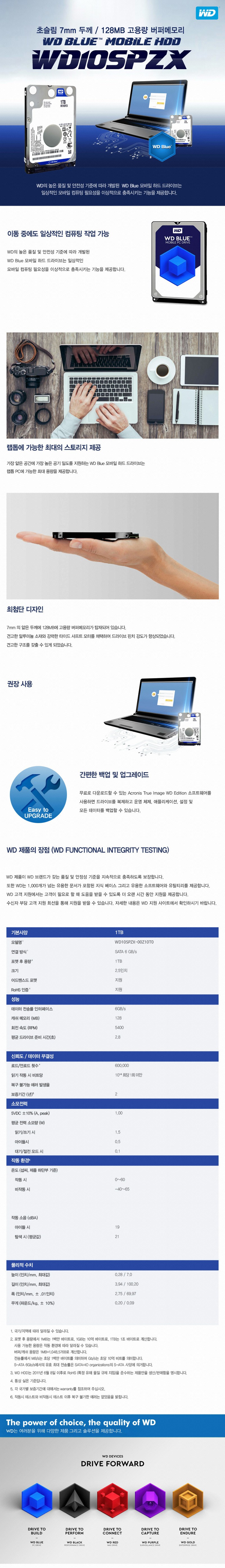 | 품명 및 모델명 | Western Digital WD 1TB MOBILE BLUE WD10SPZX (SATA3/5400/128M/노트북용)/ 모델명 : WD10SPZX-00Z10T0 |